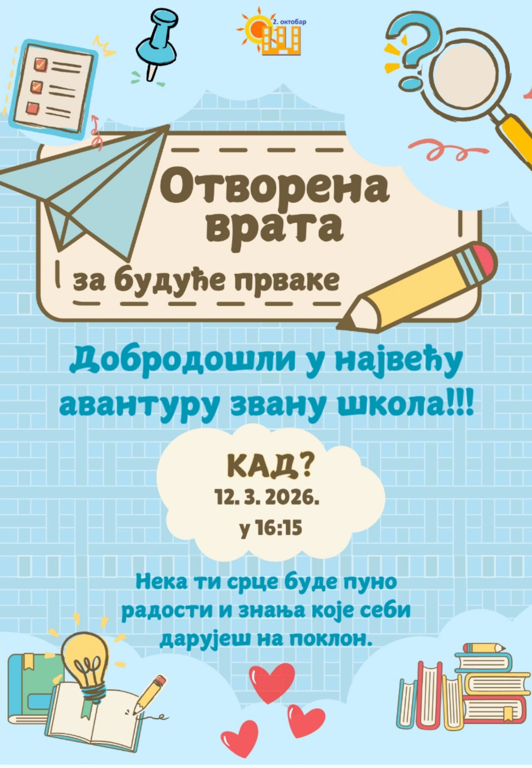 Свим ђацима желимо срећу и успех у предстојећој школској години.